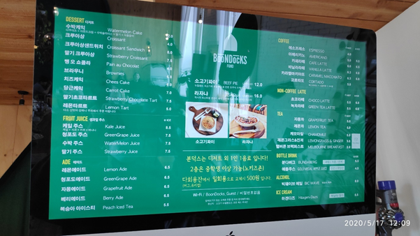 홍천 분덕스 카페의 메뉴도 한번 봐볼까요? 디저트 카페 답게 소고기파이, 라자냐,,, 크루아상, 달달한 다양한 케익들도 보이네요, 음료는 커피 외 분덕스의 시그니처인 청포드 에이드도 있고, 과일쥬스들도 있답니다.