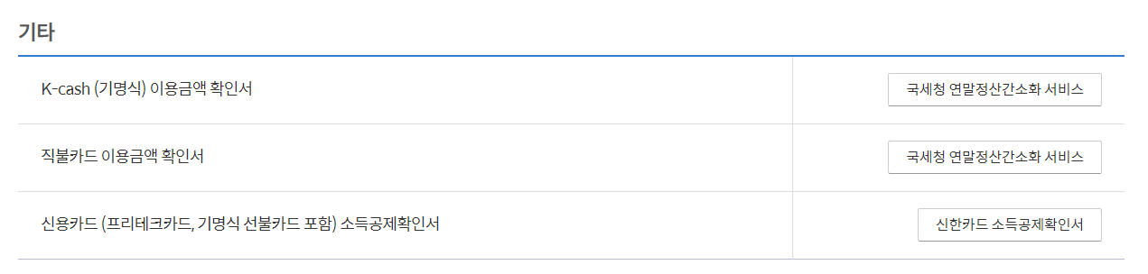 🌈 연말정산/납입증명서 메뉴로 집입해주셨다면 아래로 스크롤을 쭈욱 내려줍니다. 스크롤을 내리다 보면 '주택자금상환증명서'를 찾으실 수가 있습니다.