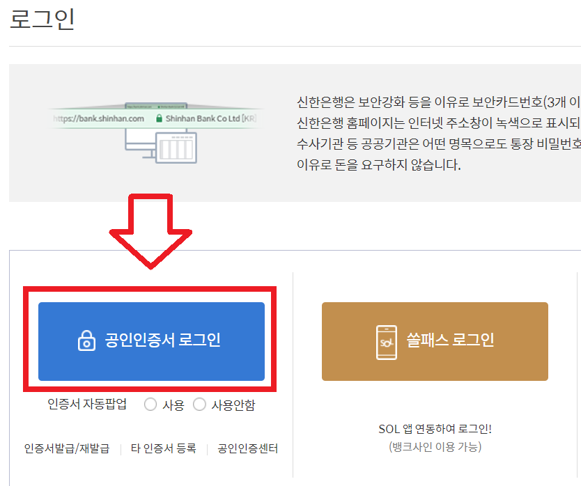 🌈 우선 로그인을 해주셔야하겠습니다. 저는 공인인증서로 로그인을 하겠습니다.