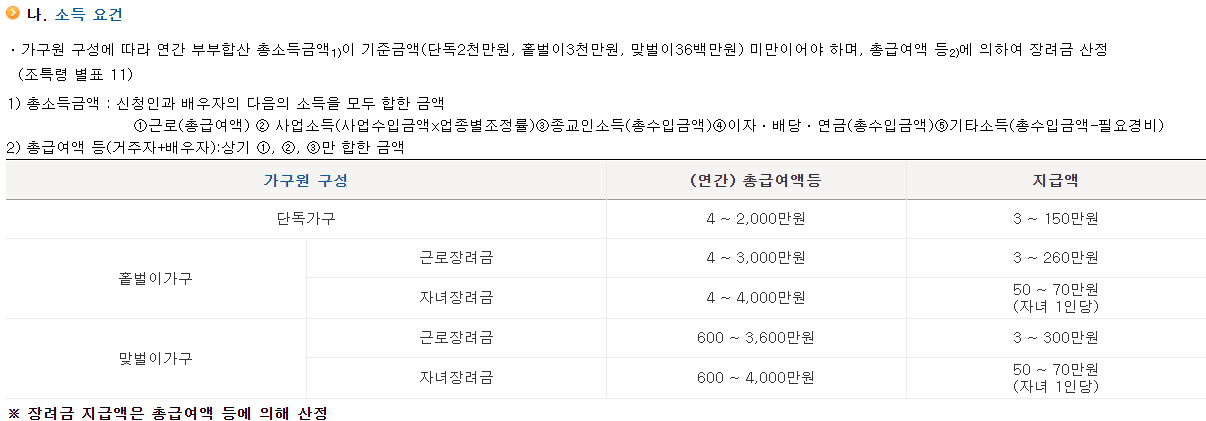 🌈 세대원들의 수와 급여액을 종합적으로 계산하여 지원금 및 장려금을 지급하고 있습니다. 이 때 장려금은 상시 지급이 아니고 정기와 반기로 나누어 지급을 하고 있는데. 2019년의 문제점이 발생하자 정기와 더불어 반기를 추가하였습니다.
