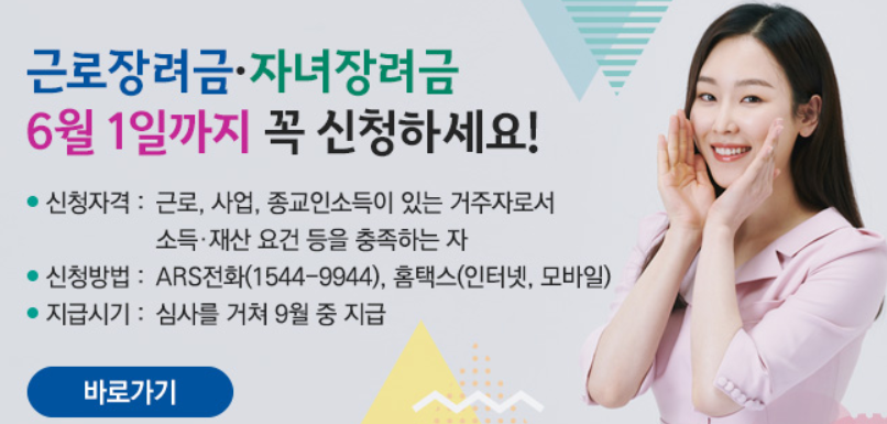 🌈 근로 장려금 신청은 아래 홈택스링크를 걸어드렸는데, 들어가시면 바로 신청하실 수가 있습니다.