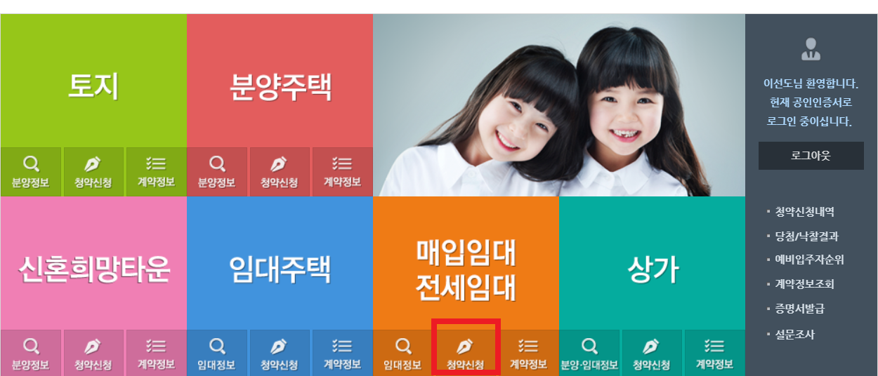🌈 링크로 접속한 뒤, 매입임대/전세임대에서 청약신청을 눌러줍니다.