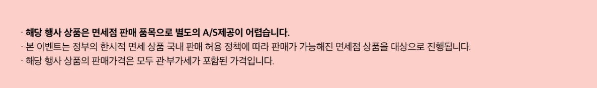 이러한 재고 면세품 제품들은 면세제품이기 때문에 들어오려면 관세와 같은 세금등이 붙을 수 밖에 없지만 잘만 구매하면 시중가보다 훨신 저렴하게 구매하실 수가 있습니다. 가장 큰장점은 해외로 출국할필요가 없다는 점이지요. 하지만 면세점 판매 품목으로 A/S는 제공하지 않는다는 점은 꼭 숙지하여야합니다. 또한 가격에 부가세가 이미 포함이 되어있다는 것도 알고 계시면 좋을 것 같습니다.