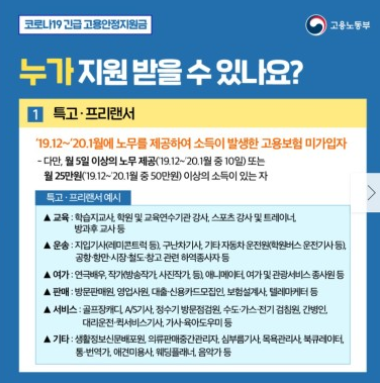 이제 업종 별로 내야하는 서류에 대해서 말씀드리겠습니다. 우선 특별고용노동자 혹은 프리랜서가 제출해야할 서류는