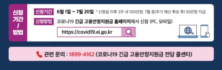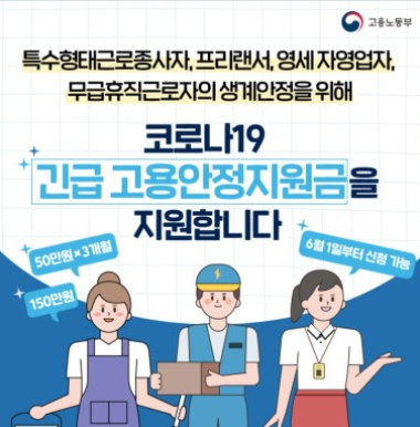 신청서류를 검색하러 오셨다면 내용에 대해서는 간략하게 설명하겠습니다. 2020년 6월 1일부터 2020년 7월 20일까지 코로나 19에 대한 긴급고용안정 지원금 신청 기간입니다. 인터넷과 방문접수 두 방법 모두로도 신청이 가능한데 이 해당 지원금을 받는 대상은 고용보험에 가입이 되어있지 않은 사람들을 대상으로 합니다. 예를 들어 특별고용노동/종사자와 프리랜서 그리고 영세자영업자 등이 있습니다.