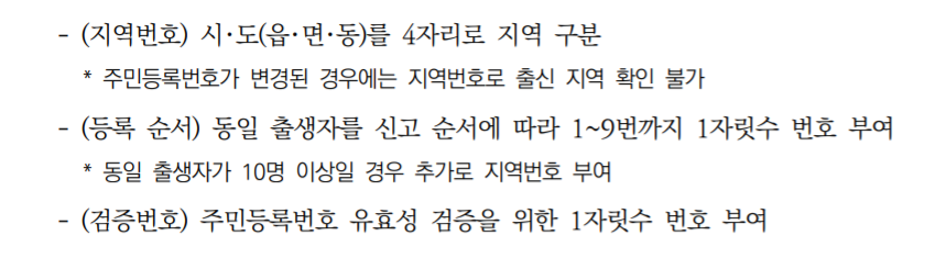 추가적으로 참고하여야 할 사항은 뒷번호가 모두 바뀌는 것은 아니고 성별을 제외한 지역번호와 등록순서 그리고 검증번호만 변경 되는 것입니다.