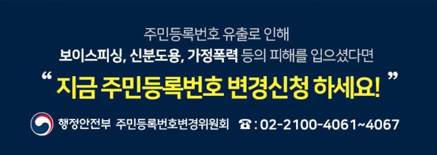 지금 사용하고 있는 주민등록 번호를 언제까지 사용을 해야할까요. 한 번 발급을 받은 뒤 한번도 변경을 해본적도 없고 과거에는 변경도 할 수가 없었습니다. 하지만 지금은 주민등록 번호 변경이 가능합니다. 이미 2017년 부터 주민등록번호에 대해 변경을 허용해주고 있는데 모두에게 허용해주는 것은 아니겠지요. 주민등록번호 뒷자리 변경에 대해서 알아보겠습니다.