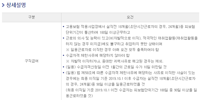 다시 정리 하자면 고용보험에 따르면 회사를 옮기는 이직일자 이전에 18개월동안 피 보험 단위기간이(고용보험의 가입기간) 180일을 이상 충족하며 마지막 최종 회사 (사업장) 의 퇴사 사유가 사업장에서의 권고사직이나 계약만료 등의 비자발적인 퇴사 그리고 합당한 이유가 있는 자발적 퇴사등의 요건을 갖춘 뒤 구직활동을 열심히 하는 경우에만 지급되는 것입니다.