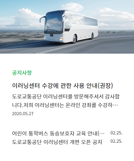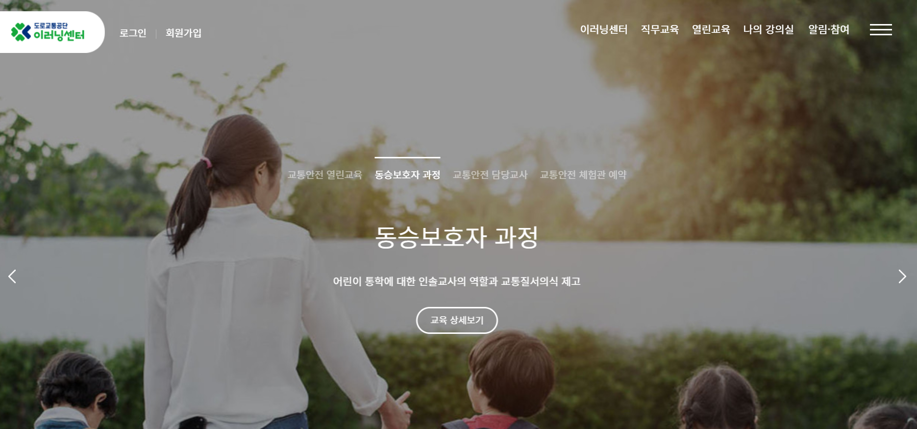 도로교통공단에서 2020년 01월에 오픈한 "도로교통공단 이러닝센터"에 들어가시면 동승자보호자 교육 과 교통안전 담당교사 콘테츠 그리고 열린교육 등을 제공해주고 있습니다. 우선 도로교통공단 이러닝센터로 들어가 주겠습니다.
