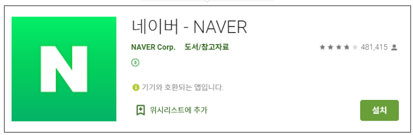 구글플레이스토어 네이버 어플 ◀설치 하러 가기