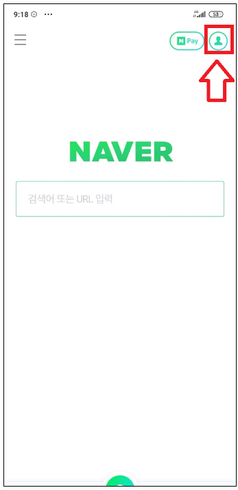 네이버 어플리케이션을 설치 완료 하셨다면 실행을 시켜줍니다. 실행이 완료되면 제일 오른쪽 상단 위에 있는 사람모양메뉴를 눌러서 진입해줍니다. 만약 로그인을 하지 않았다면 로그인을 먼저 해주시고 진입해주시면 됩니다.