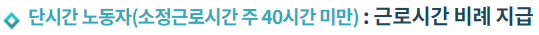 만약 단시간 짧게 노동을하는 근로자라면 어떨까요 (여기서 단시간이란 주 40시간 미만을 이야기합니다.). 단시간 노동자들은 근로시간을 비례해서 지급하게 됩니다.