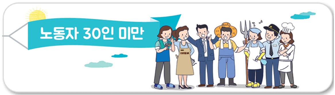업종의 특성을 고려해서 아파트나 다세데 주택의 경비 청소원 들 같은 경우에는 30인 이상이 되면 지원을 하실 수가 있습니다.