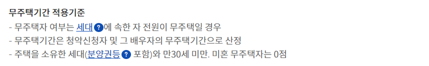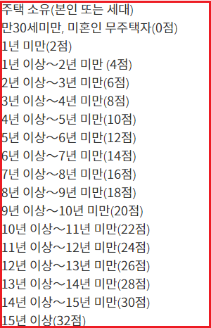 참고로 청약을 신청하는 사람의 배우자가 결혼을 하기 전에 판매를 했다면 산정을 하지 않고, 두 번 이상 집을 가진적이 있는 경우는 제일 최근 무주택자가 된 날짜로 계산해야합니다.