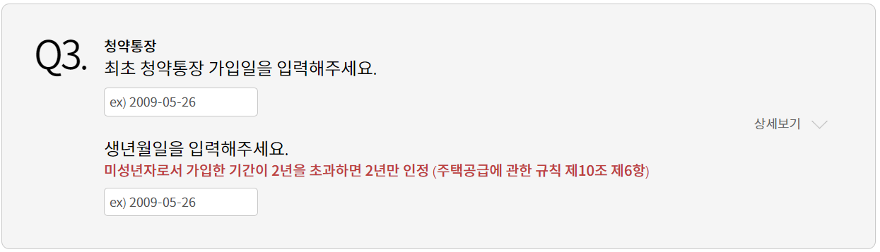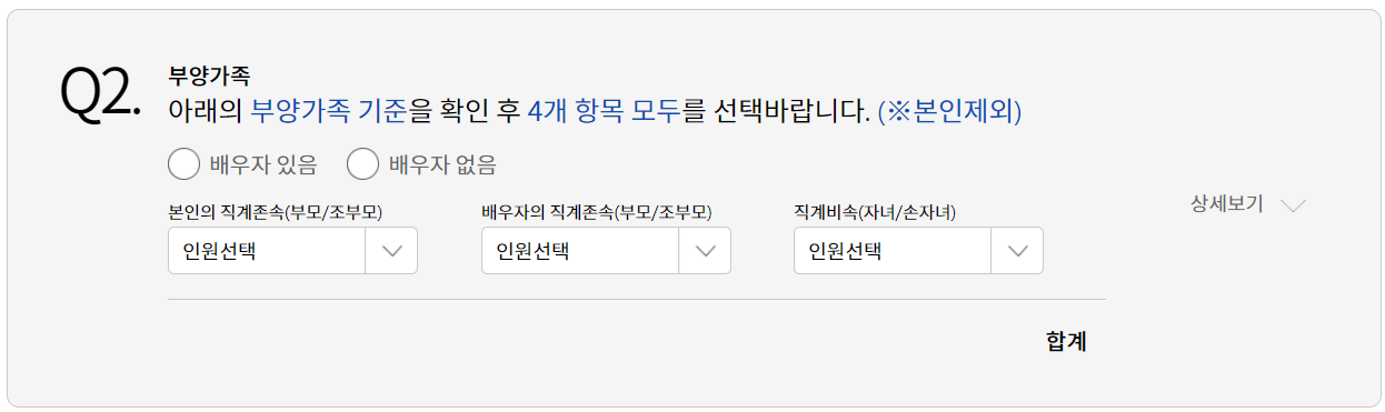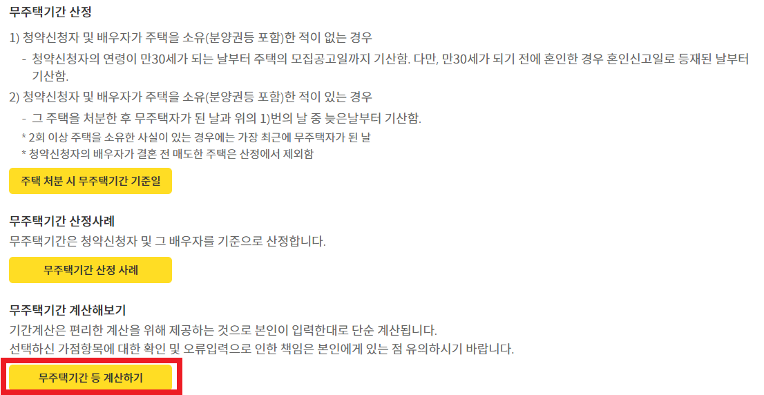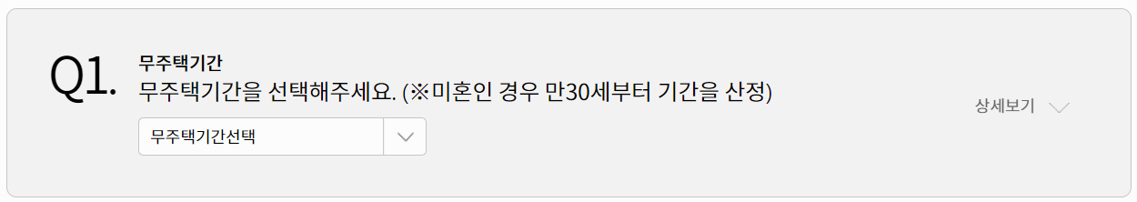 Q1에서 상세보기를 눌러보면 제일아래 무주택기간 등 계산하기를 찾아서 눌러줍니다.