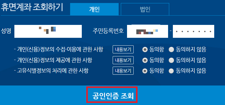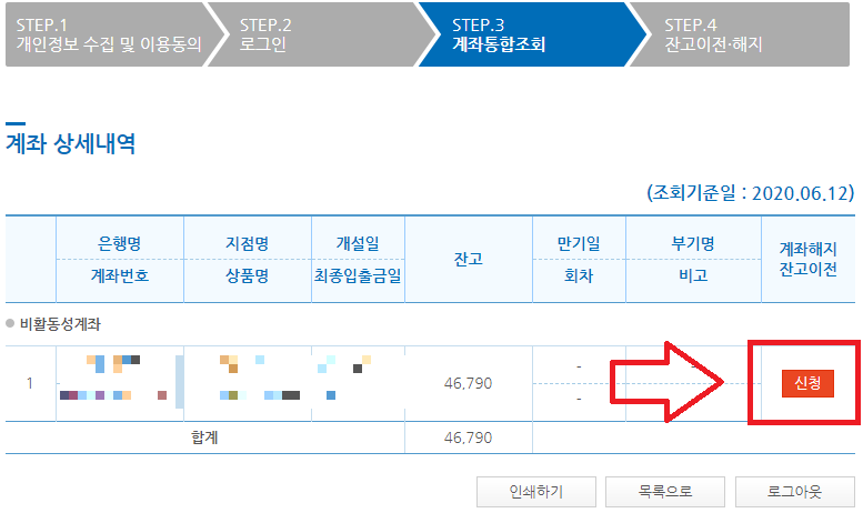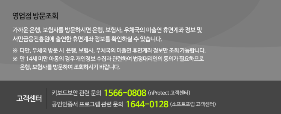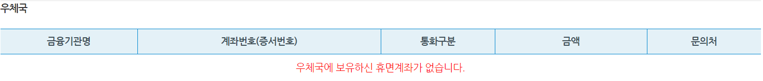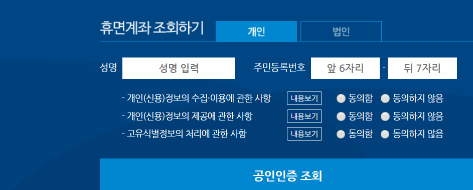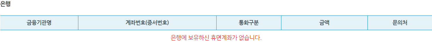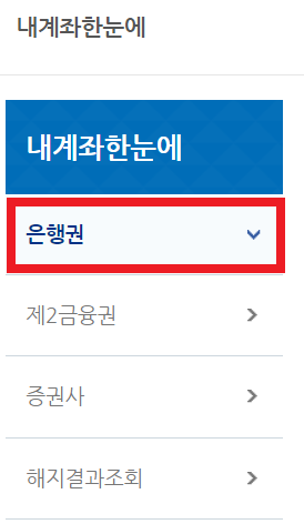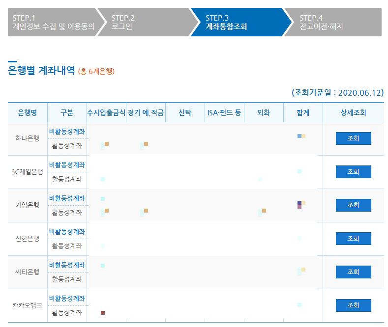 휴면계좌 통합조회 검색