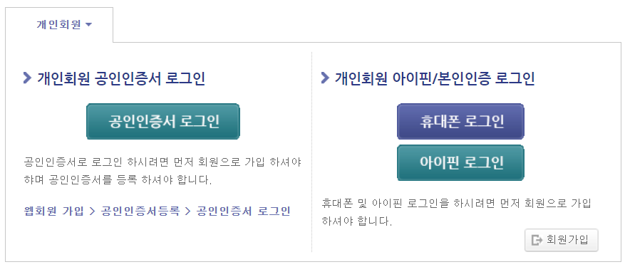 온라인 교육을 누르게 되면 로그인화면이 뜨게 되는데 공인인증서로 로그인을 해주시면 되겠습니다.