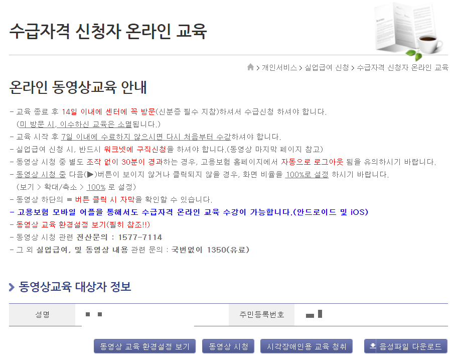이제 홈페이지에서 안내하는 절차에 따라 온라인 교육을 받으시면 되겠습니다.
