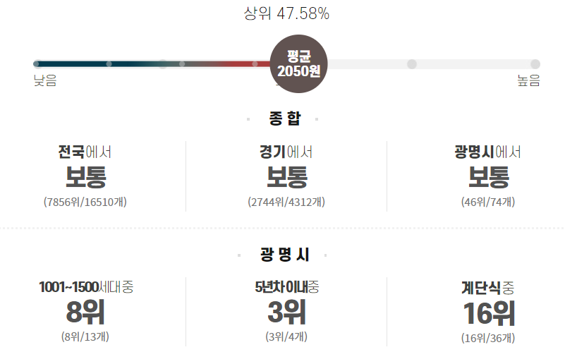 대한민국 상위 3.54%에 속하는 아파트로 결과치가 나왔습니다. 엄청 비싼편에 속하는 것이군요. 어쩐지 비싸더군요.