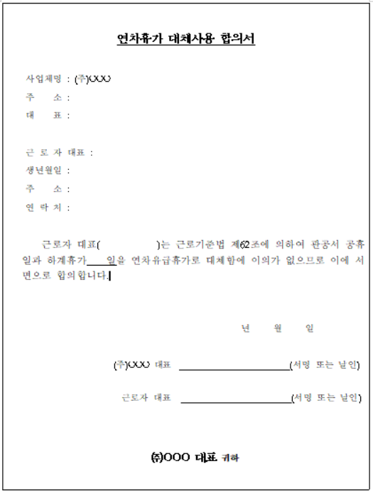 약정휴일: 노사간 정해진 휴일 (예: 창립기념일)