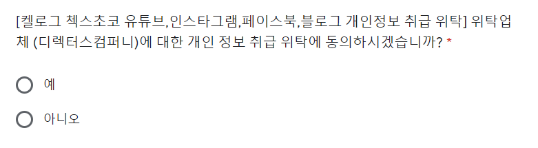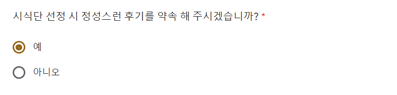 링크로 접속한 뒤 간단한 설문조사와 정보를 기입해주면 시식단 응모가 완료됩니다.