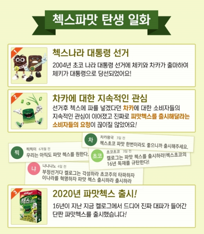 ⭐ 바야흐로 2004년 켈로그에서는 신제품 출시에 대한 이벤트로 투표를 진행을 했었습니다. 후보는 밀크 초콜릿 캐릭터 '체키'와 기호2번인 캐릭터 차카 였죠.