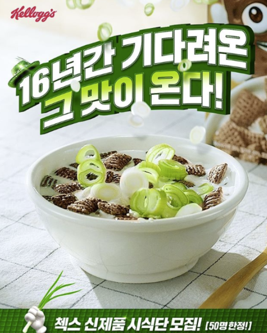 ⭐ 태진아님의 미안미안해노래가 나오면서 첵스에 파가 떨어지는 영상인데요. 켈로그에서는 유튜브 작성자 댓글에 '너무 늦게 출시해서 미안하며 파맛 첵스의 신제품 시식단 모집을 안내했습니다.