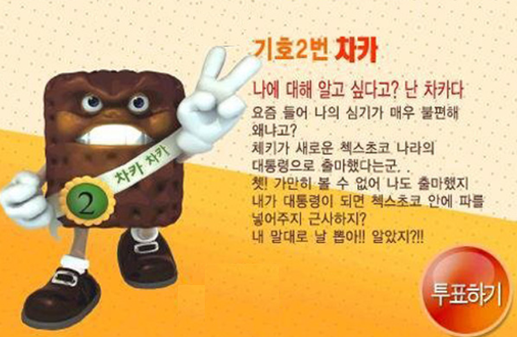 이벤트를 진행하는 운영자 입장에서는 파맛이 나는 첵스 (차카)는 어차피 투표에서 떨어질 것이라고 생각 했었던것으로 생각이 됩니다.