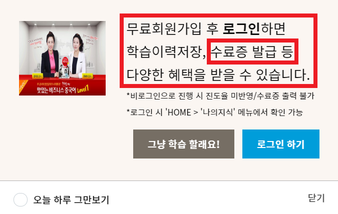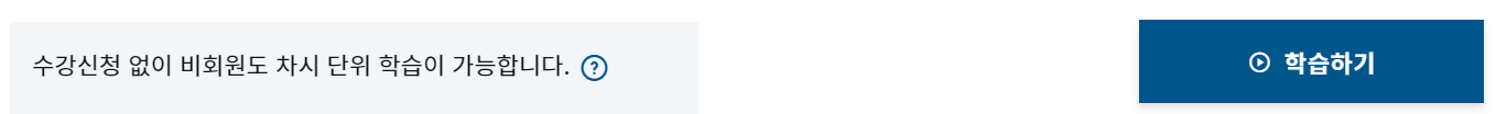 ⭐아래처럼 바로 수강을 하실 수가 있는데요. 학습하기를 누르게 되면, 회원가입을 하는 것을 추천해줍니다. 회원가입을 하게 되면 수료증도 발급 받을 수 있고,