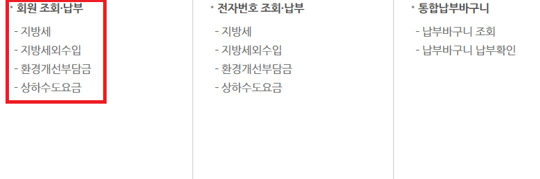⭐ 아래이미지대로 납부하기 지방세를 찾아주시면 됩니다.