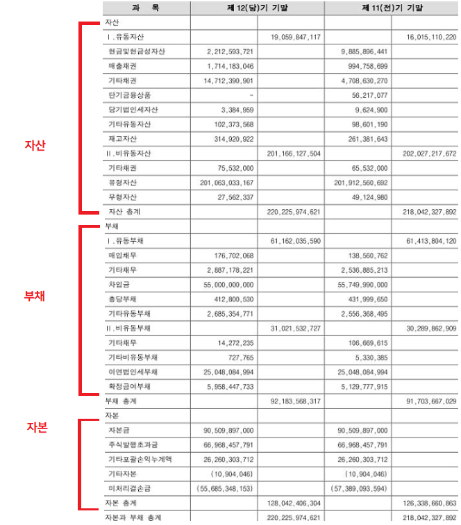 ⭐ 재무상태표란 재무건전성을 보여줍니다.