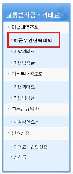 ⭐ 홈페이지에 접속하자마자 오른쪽 메뉴 바로가기에 최근무인단속내역 메뉴가 떡하니 보입니다. 사람들이 자주사용하는 메뉴를 쉽게 들어갈 수 있도록 꺼내 놓은 듯합니다. 일단 눌러서 진입을 해줍니다.