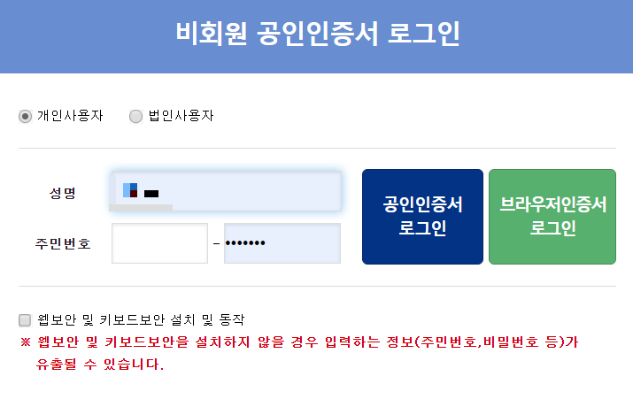 ⭐공인인증서로 로그인을 해줍니다. 비회원도 회원가입하지않고 공인인증서로 간편하게 로그인할 수가 있습니다. 로그인을 한뒤 교통범칙금*과태료 메뉴에서 제일 위에 최근무인단속 내역을 눌러서 진입해줍니다.