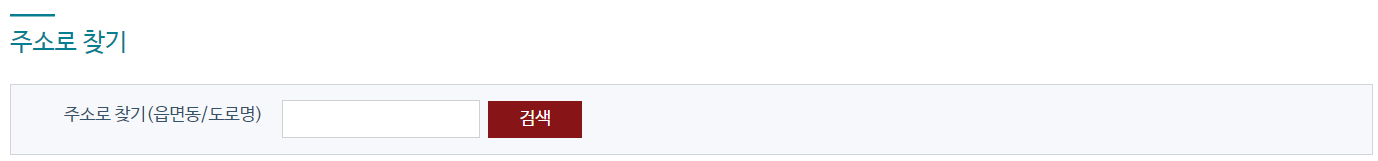 ⭐ 접속하게 되면 아래처럼 사이트가 나오는데, 아래 주소로찾기 혹은 지도에서 찾기로 간단하게 조회하실 수가 있습니다.