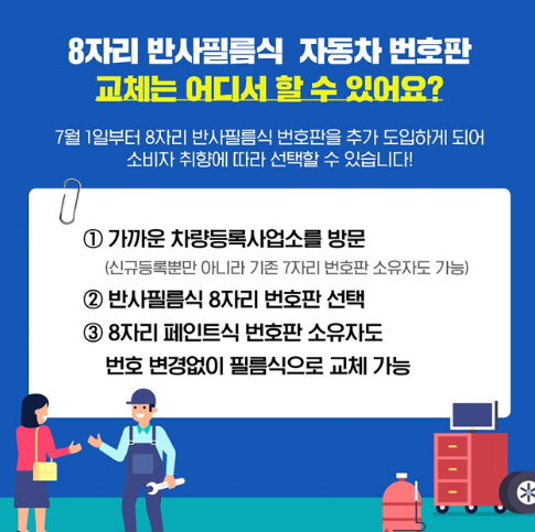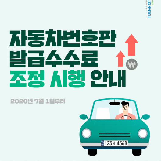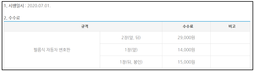 ⭐ 이런 반사필름식 자동차 번호판은 2020년 7월 1일 시행이고, 각 지자체에서는 이렇게 발급되는 반사필름식 번호판 발급수수료를 인상을 하고 있습니다.