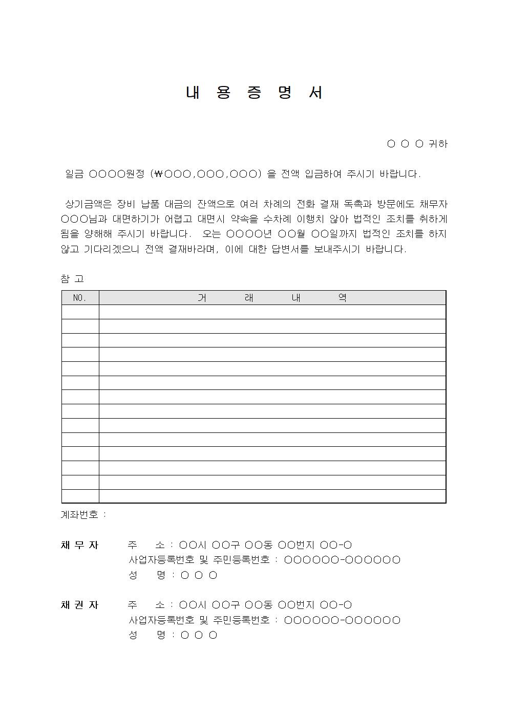 ⭐ 내용증명 양식