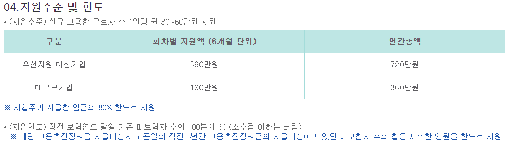 취업성공패키지 참여자를 고용한 기업에게는 얼마의 지원금이 나오게 될까요. 경우마다 다르겠지만 1년간 최대한도로 지급 받을 수 있는 지원금의 규모는 720만원이고 대기업이라면 360만원을 최대로서 지원받을 수가 있습니다.