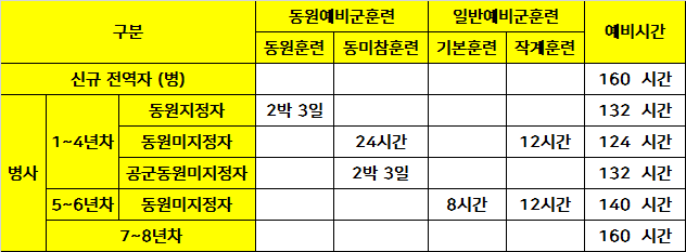 예비군은 영어로 Resever Force 그리고 민방위는 영어로 Civil Defense 라고 하죠. 예비군에 대해 질문을 가장많이하는 연차는 아무래도 예비군1년차부터 4년차까지 일것입인데요. 동원훈련과 동미참훈련에 관해서도 궁금한점이 많으실 것입니다. 일단, 예비군은 전역하고 6년간 받아야되는 훈련이죠.