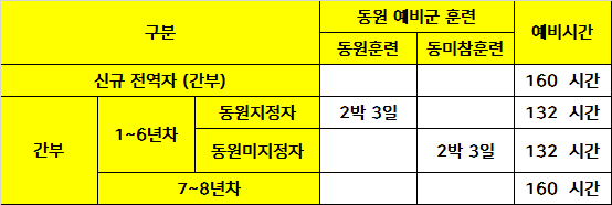 간부의 경우는 동원훈련은 2박 3일 동미참훈련 2박3일로 동일합니다.