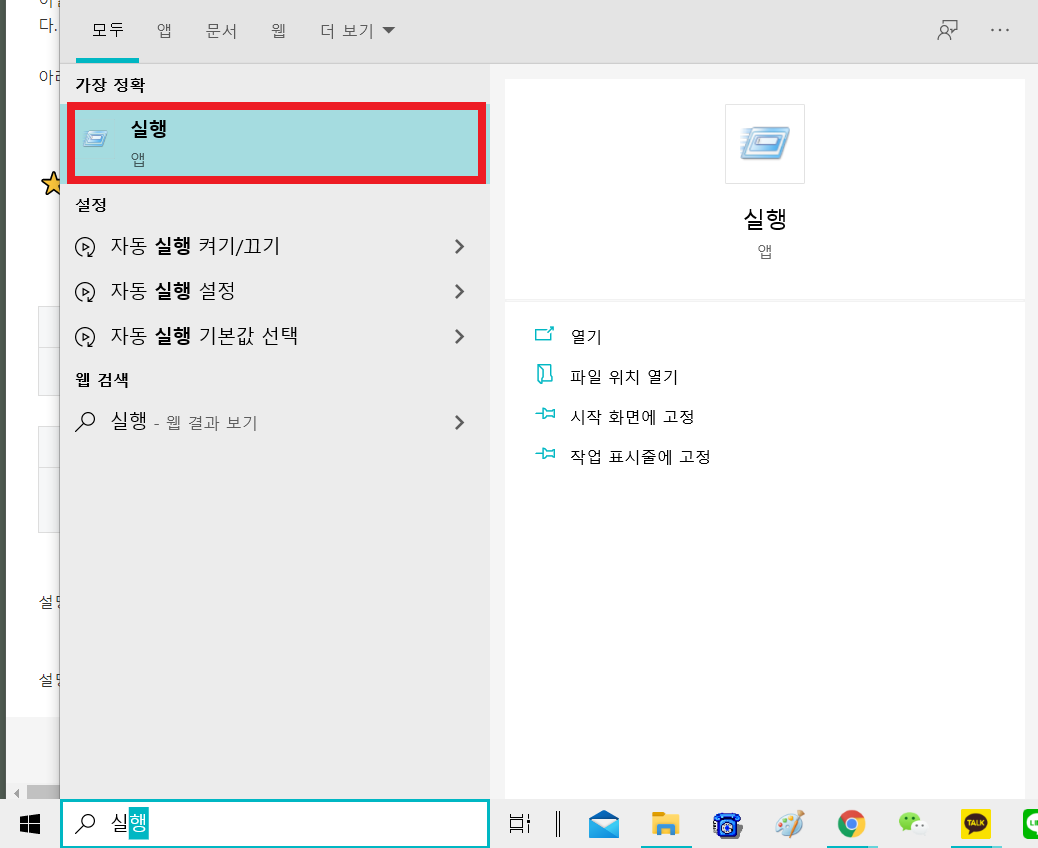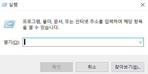 아래처럼 실행을 검색해서 실행해 주시거나 윈도우+R을 눌러서 진입해주세요.