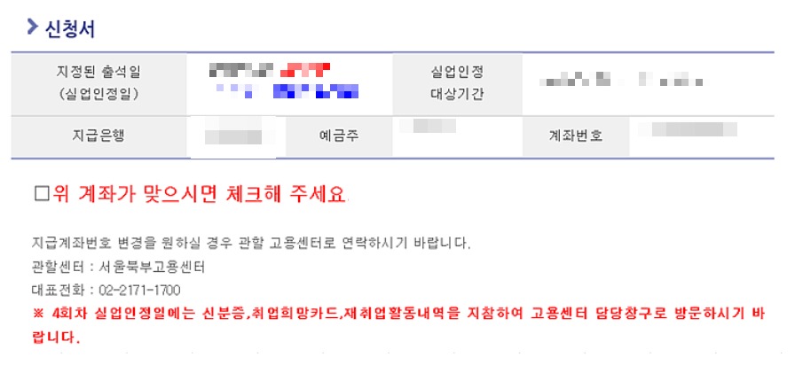 내용 확인 & 통장번호 작성 등을 해줍니다.
