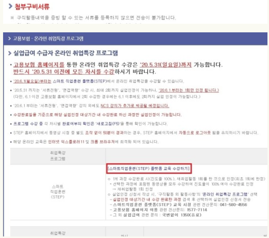 기존에 서류전형이나 면접역량과 같은 프로그램에 수강을 완료하게 되면 각 1회씩에 한하여 실업인정이 가능했었는데요. 이제는 각각의 프로그램에 대해서는 최대 2회까지 최초수강 및 재수강에서 실업인정이 가능하게 변경이 되었습니다.