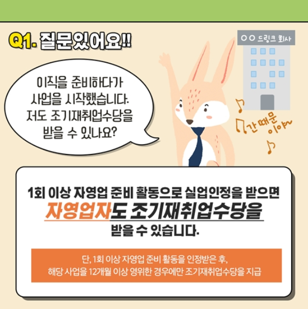 이렇게 실업급여를 수급을 받던 사람이 수급일수의 반이상을 남겨놓은 채, 다시 취업에 성공하거나 혹은 사업을 시작하게 된 경우에는 조기재취업 수당을 받을 수가 있게 됩니다.