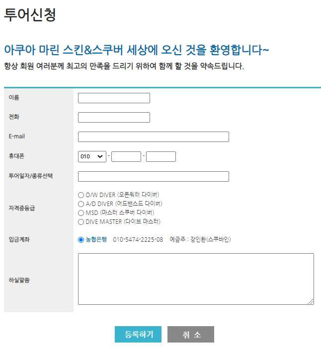 위에서 알려드린 바로가기 링크에서 투어신청서에 이름과 전화 그리고 가지고 있는 자격증 등급 등과 입금확인을 하고 투어 신청 등록을 하면 됩니다.