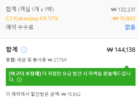아고다와 같은 홈페이지는 어떤 경로를 들어가냐에 따라서 할인율이 달라지기 때문에 가격을 알아볼 때는 최대한 많이 검색해서 다양한 경로로 진입해서 할인율이 큰 곳에서 결제를 하는 것이 좋습니다.