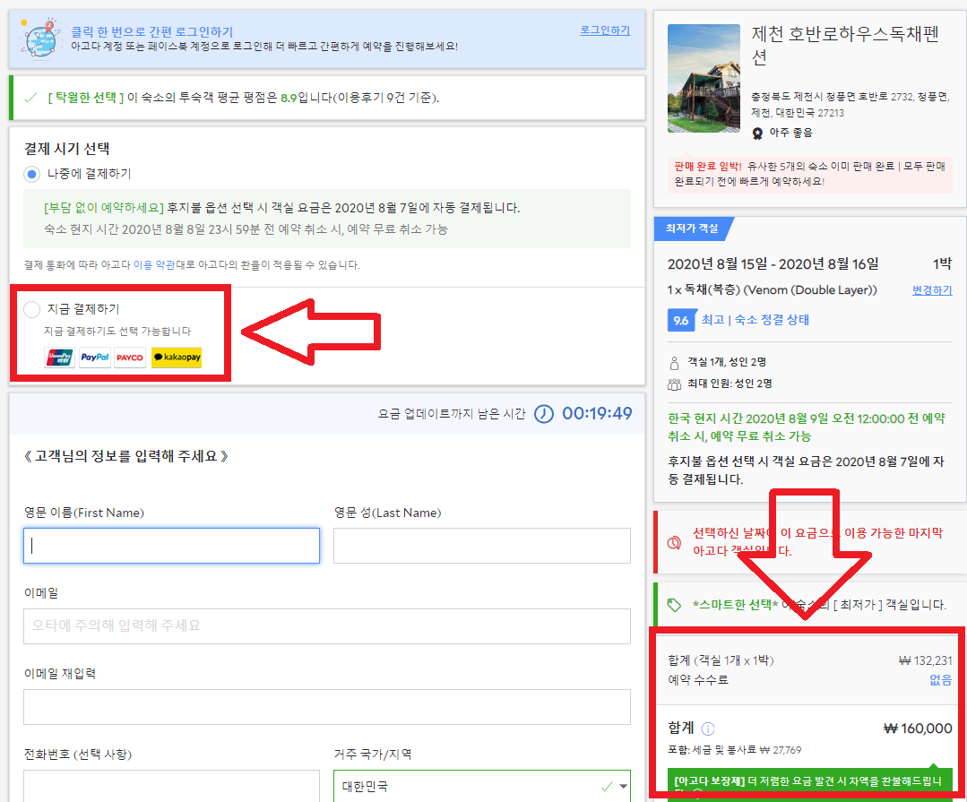 우선 비교를 먼저 해드려야 겠습니다. 아래는 일반 검색창에 그냥 아고다를 검색한 뒤 예약하기를 눌러서 나오는 금액입니다.