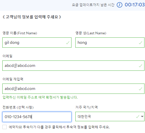 지금결제하기를 선택한 뒤 아래 고객님의 정보를 입력해주세요.