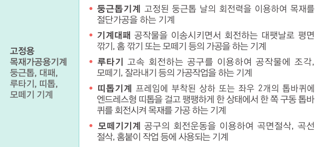 연삭기/연마기/산업용로봇/혼합기/파쇄기/분쇄기/식품가공용기계/컨베이어/자동차정비용리프트/공작기계(선반,드릴기,평삭,형학기,밀링기)/고정용(목재가공용기계,둥근ㅌ톱,대패,루타기,띠톱)/인쇄기/기압조절실 등이 대상입니다.