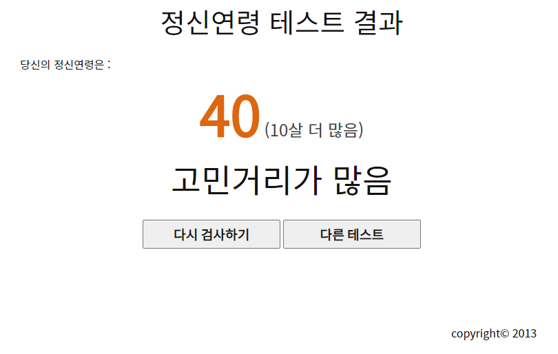 제 정신 연령은 40살이네요. 굉장히 당황스럽습니다.