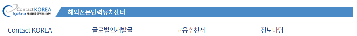 여튼 제일 아래에 보면 콘택트코리아, 해외전문인력유치 센터가 있습니다.